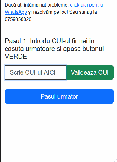 Să ne spuneți cui-ul si numele firmei pentru care doriți certificatul și pentru ce aveți nevoie!